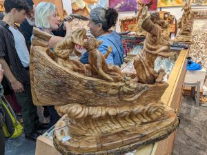 Unique to this festival is the requirement that two authors must share a six foot table. Both our table, and the one which backed up to ours, also had co-authors present. That means that three authors, and their displays were crowded into each of these tables. So, Shelley and I were squeezed in by two co-authors on our left sharing our table, and three authors sharing a table just a few feet behind us. See the book display picture below. On my immediate right was Aaron, an approximately 6’ 4”, 270 pound brother-in-the LORD selling his books of poetry. We were all packed in like sardines in our little section of the festival.