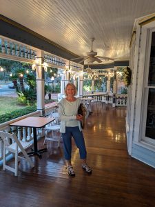 We had planned to get up early on the day of the event and drive to Gainesville, until a friend recommended a B&B there. Following her advice, we drove up on the day prior to the event. Upon arriving in Gainesville, we were blessed to get a private tour of the book festival venue even though the building was officially closed. Then we headed off to the Sweetwater Branch Inn B&B, (see front porch picture below).