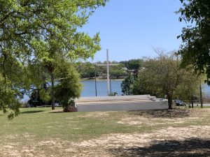 At about 7:30 am on the morning of the book festival, we packed our belongings into the car, checked out of our unit on Miramar Beach, and then drove one and one-half hours West to Pensacola. We had planned to head out a half hour earlier. But we received notice that a “run event” was being held that morning in the same park where the festival was located. So, we were told not to arrive prior to 9:00 am, and were also told that after unloading, we would have to leave our vehicles on a neighborhood street, as the parking lot would be filled with the runners’ cars. We arrived shortly after 9:00 am, and loaded our materials into a cart which we had acquired for that purpose. I headed into the community center with the cart, checked in, located our table, and began setting up, while Shelley drove off to find a parking space.